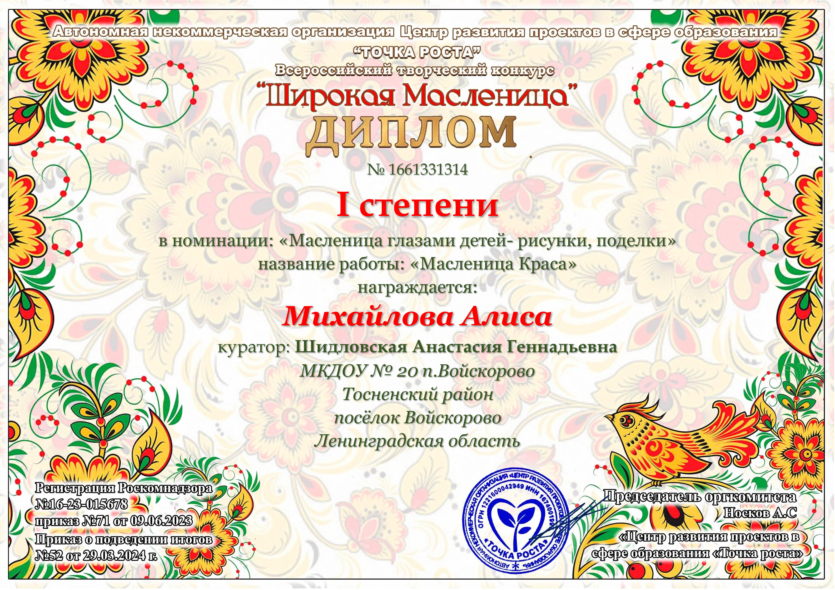 Подведены итоги Всероссийского творческого конкурса "Широкая Масленица" центром развития проектов в сфере образования "ТОЧКА РОСТА"