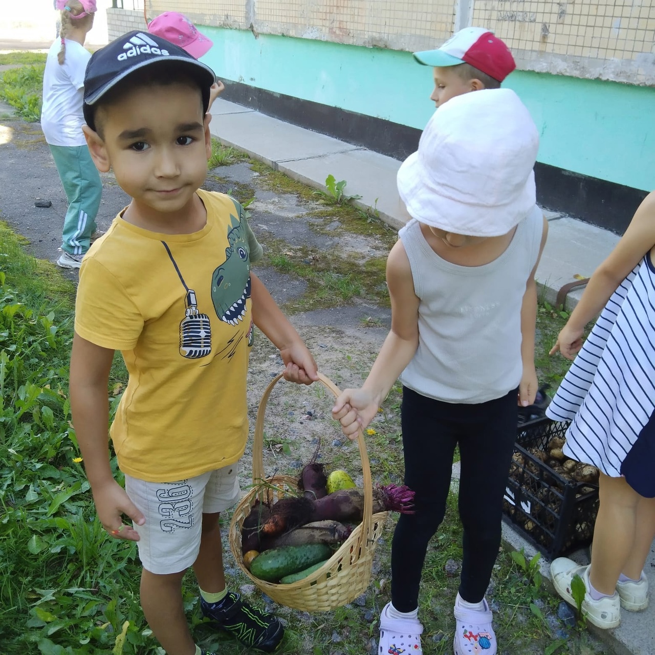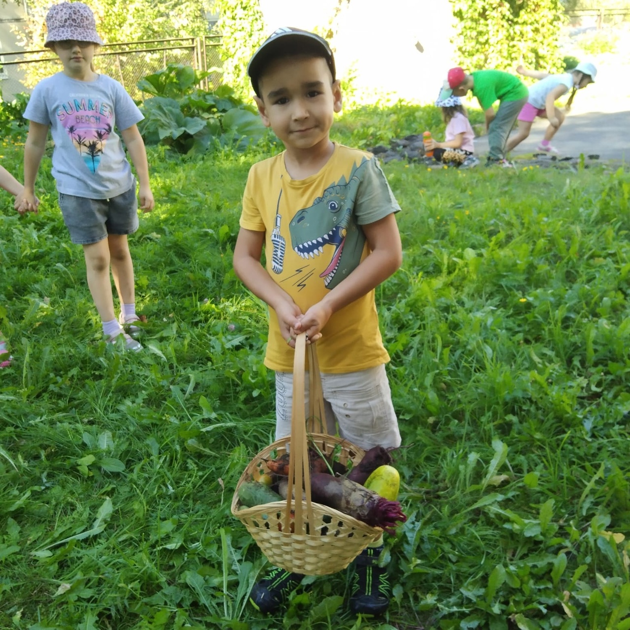 Дети с гордостью собрали урожай, посаженный своими руками! Весной дети всех возрастных групп принимали участие в посеве семян, рассады. Все лето ухаживали за овощами на огороде, наблюдали за их ростом и развитием, оттого и такой результат.