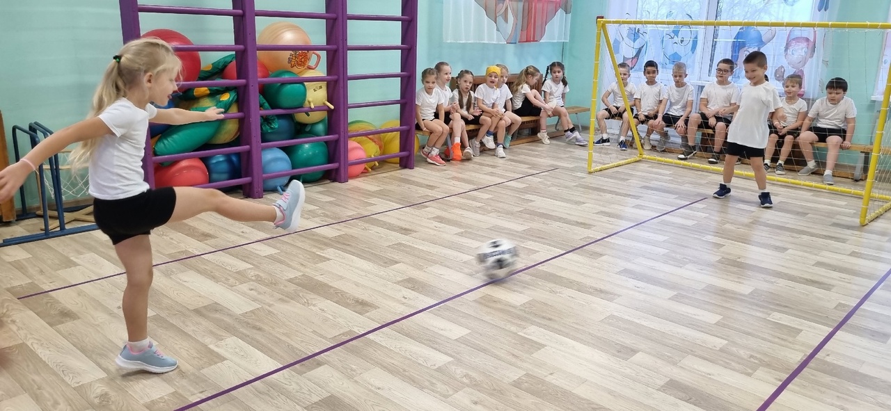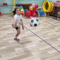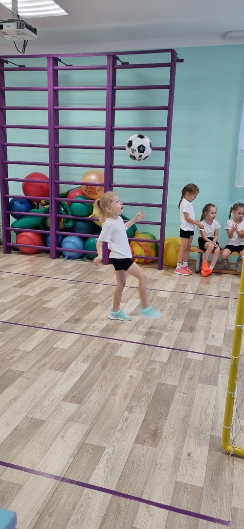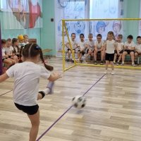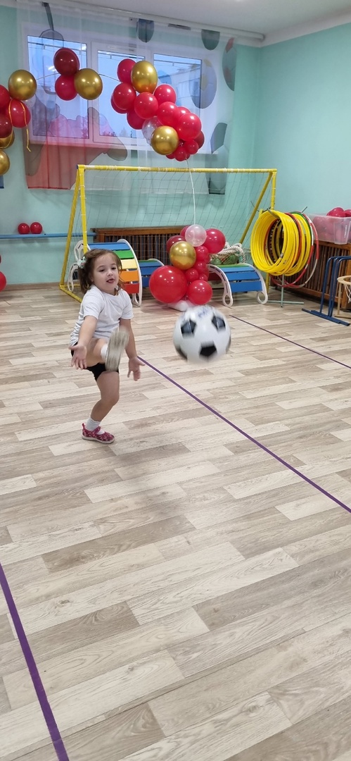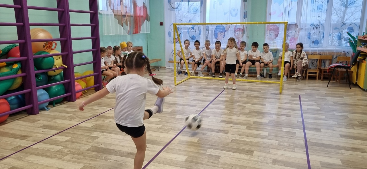 В детском саду прошло мероприятие "Мы играем в футбол". В нем участвовали не только мальчики, но и девочки.